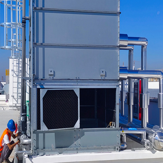 防凍:在寒潮期間,環(huán)境溫度可能會(huì)很低,導(dǎo)致設(shè)備出現(xiàn)凍結(jié)、凝固、析出結(jié)晶等現(xiàn)象。因此,需要確保設(shè)備在寒潮期間保持適當(dāng)?shù)臏囟?,避免超出正常工作溫度區(qū)間,對(duì)于正在使用中的設(shè)備,需要開(kāi)啟循環(huán)水塔或冰水機(jī)的電輔助加熱功能,配有散熱風(fēng)扇調(diào)節(jié)器的循環(huán)水塔,可以調(diào)節(jié)水塔的散熱扇的開(kāi)啟溫度,另外,為了降低循環(huán)冷卻水的凝固點(diǎn),可在循環(huán)的水路中添加適量的乙二醇或防凍液,一般按量添加約35%即可。